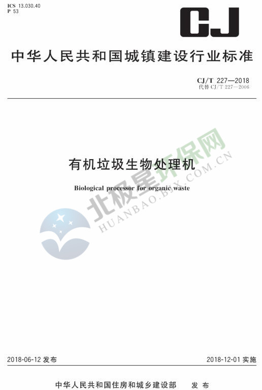 日前,住建部發(fā)布了行業(yè)產(chǎn)品標(biāo)準(zhǔn) 《有機垃圾生物處理機》,詳情如下:住房城鄉(xiāng)建設(shè)部關(guān)于發(fā)布行業(yè)產(chǎn)品標(biāo)準(zhǔn)《有機垃圾生物處理機》的公告 現(xiàn)批準(zhǔn)《有機垃圾生物處理機》為城鎮(zhèn)建設(shè)行業(yè)產(chǎn)品標(biāo)準(zhǔn),編號為CJ/T227-2018,自2018年12月1日起實施。原《垃圾生化處理機》CJ/T227-2006同時廢止。本...