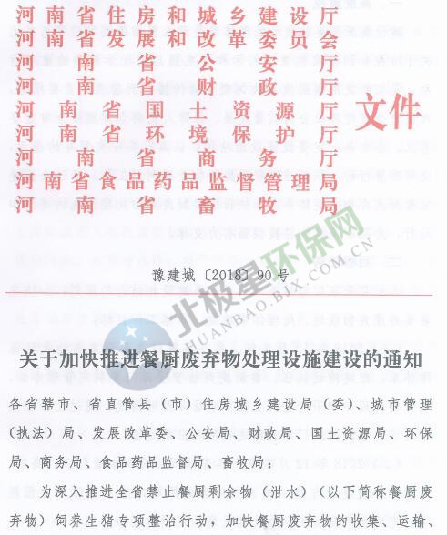 日前,河南省發(fā)布了關(guān)于加快推進(jìn)餐廚廢棄物處理設(shè)施建設(shè)的通知,詳情如下: