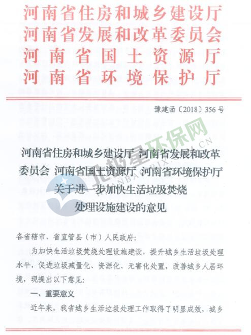 日前,河南省發(fā)布關(guān)于于進(jìn)一步加快生活垃圾焚燒處理設(shè)施建設(shè)的意見(jiàn),到2020年,全省生活垃圾焚燒處理要達(dá)到全省生活垃圾量的50%以上。詳情如下: