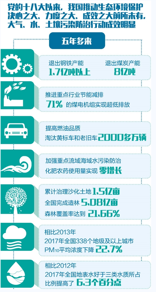 近五年來,我國生態(tài)環(huán)境保護成效顯著。一方面,能源消費結(jié)構不斷優(yōu)化,單位GDP能耗下降20%以上,重點城市重污染天數(shù)減少一半,森林覆蓋面積不斷增加;另一方面,制度建設日益完善,新環(huán)保法增加按日連續(xù)計罰等執(zhí)法手段,大氣污染防治法、水污染防治法、環(huán)境影響評價法、土壤污染防治法等陸續(xù)制定修訂,使我國污染防治...