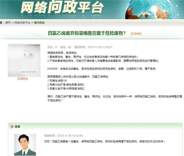四氯乙烯廢棄包裝桶是否屬于危險(xiǎn)廢物?根據(jù)危廢目錄,危廢特性:1.具有腐蝕性、毒性、易燃性、反應(yīng)性或者感染性等一種或者幾種危險(xiǎn)特性的;2.不排除具有危險(xiǎn)特性,可能對(duì)環(huán)境或者人體健康造成有害影響,需要按照危險(xiǎn)廢物進(jìn)行管理的。HW49中,含有或沾染毒性、感染性危險(xiǎn)廢物的廢棄包裝物、容器、過(guò)濾吸附介質(zhì)。屬于...