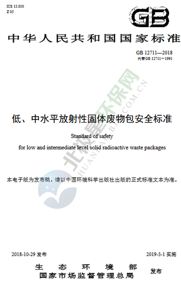 日前生態(tài)環(huán)境部發(fā)布了《關(guān)于發(fā)布《低、中水平放射性固體廢物包安全標(biāo)準(zhǔn)》等四項(xiàng)放射性污染防治標(biāo)準(zhǔn)的公告》,批準(zhǔn)《低、中水平放射性固體廢物包安全標(biāo)準(zhǔn)》《低、中水平放射性廢物高完整性容器——球墨鑄鐵容器》《低、中水平放射性廢物高完整性容器——混凝土容器》《低、中水平放射性廢物高完整性容器——交聯(lián)高密度聚乙烯...