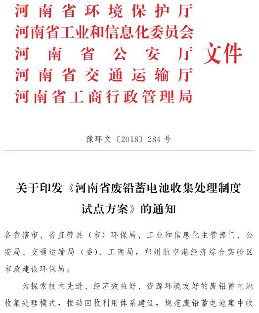 日前,河南省五部門(mén)聯(lián)合印發(fā)了《河南省廢鉛蓄電池收集處理制度試點(diǎn)方案》,《方案》提出,到 2018 年底,構(gòu)建廢鉛蓄電池集中收集、跨區(qū)域轉(zhuǎn)運(yùn)方式和全過(guò)程溯源管理模式,年底總結(jié)試點(diǎn)地區(qū)經(jīng)驗(yàn),在全省范圍內(nèi)推行。到 2019 年底,試點(diǎn)企業(yè)落實(shí)廢鉛蓄電池規(guī)范化管理制度,建成廢鉛蓄電池逆向物流回收體系。到 2...