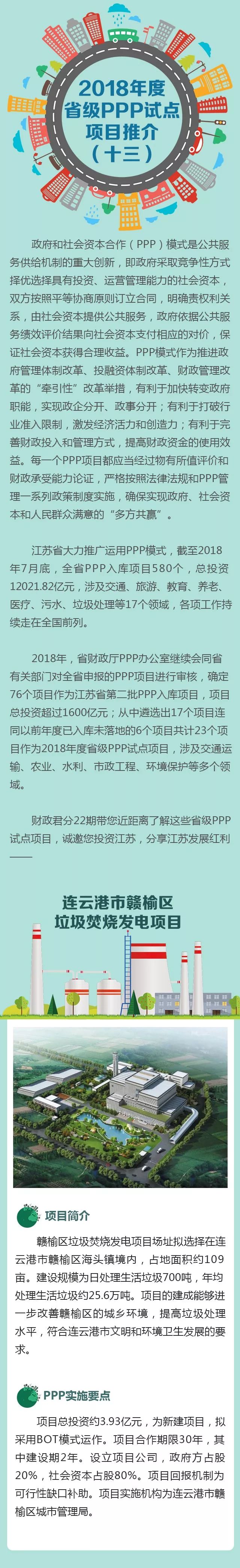 2018省級(jí)PPP試點(diǎn)項(xiàng)目推介之十三連云港市贛榆區(qū)垃圾焚燒發(fā)電項(xiàng)目2018省級(jí)PPP試點(diǎn)項(xiàng)目推介之十一新沂市生活垃圾焚燒發(fā)電項(xiàng)目原標(biāo)題:2018江蘇省級(jí)PPP試點(diǎn)項(xiàng)目推介(垃圾焚燒專(zhuān)場(chǎng))