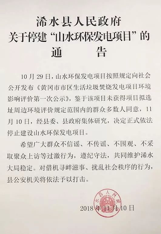 11月9日下午浠水縣人民政府官方發(fā)布了關于停建“山水環(huán)保發(fā)電項目”通告,理由是鑒于該項目未獲得項目擬選地址周邊環(huán)境評價規(guī)定范圍內的群眾多數(shù)人同意,經(jīng)縣委、縣政府集體研究,決定停止建設山水環(huán)保發(fā)電項目。就此浠水山水環(huán)保發(fā)電項目引起的群眾聚集反對事件應該算告一段落了,這場看似群眾維護自身權利的勝利,是否...