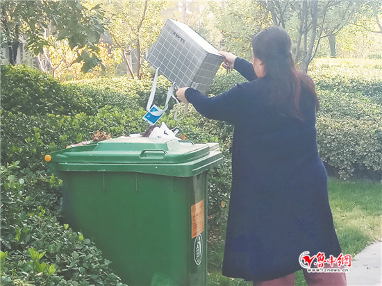11月5日,竹西社區(qū)居民體驗(yàn)操作智能垃圾分類回收箱。當(dāng)日,江蘇省揚(yáng)州市垃圾分類市民卡積分兌換平臺(tái)在邗江區(qū)竹西社區(qū)正式上線運(yùn)行,該“互聯(lián)網(wǎng)+垃圾分類”數(shù)據(jù)平臺(tái)將垃圾分類積分與市民卡綁定,居民刷市民卡再分類投放垃圾即可獲得積分,積分可以在“再生資源兌換超市”中兌換生活用品。 新華社發(fā)(莊文斌 攝)11月...