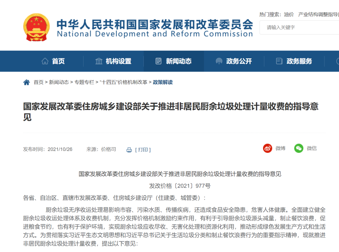目前,北京、廣東、甘肅、陜西、山西、新疆、江西、福建、浙江、河北等多地已先后出臺政策,按照“產(chǎn)生者付費”原則,建立健全計量收費機制,推進非居民生活垃圾計量收費工作開展。河北省2022年7月14日,河北省發(fā)展和改革委員會會同河北省住房和城鄉(xiāng)建設(shè)廳印發(fā)《關(guān)于建立非居民廚余垃圾處理計量收費機制的實施意見(...