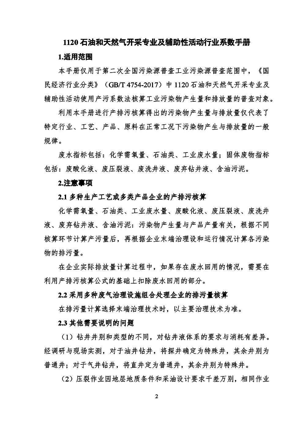 導讀:第二次全國污染源普查 石油和天然氣開采專業(yè)及輔助性活動行業(yè)系數(shù)手冊(初稿) 本手冊僅用于第二次全國污染源普查工業(yè)污染源普查范圍中,《國民經(jīng)濟行業(yè)分類》(GB/T 4754-2017)中1120石油和天然氣開采專業(yè)及輔助性活動使用產(chǎn)污系數(shù)法核算工業(yè)污染物產(chǎn)生量和排放量的普查對象。利用本手冊進行產(chǎn)...