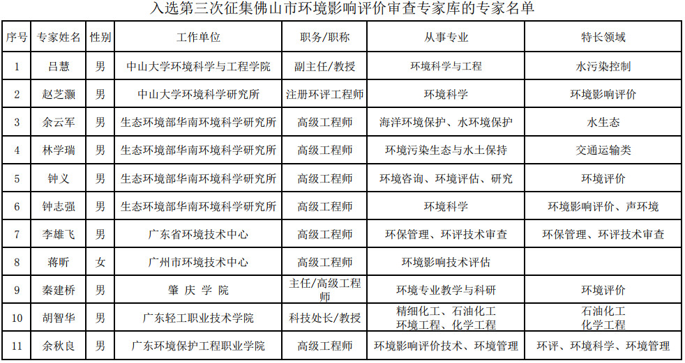 佛山生態(tài)環(huán)境局發(fā)布了關于第三次征集佛山市環(huán)境影響評價審查專家?guī)鞂<胰脒x名單的公示,全文如下:為進一步規(guī)范和完善我市環(huán)境影響評價文件的審查,發(fā)揮專家在建設項目環(huán)境影響評價和規(guī)劃環(huán)評文件審查中的技術把關作用,提高審查質(zhì)量和效率,我局擬第三次征集佛山市環(huán)境影響評價審查專家?guī)鞂<?,?jīng)征集、遴選、審查,現(xiàn)將入...