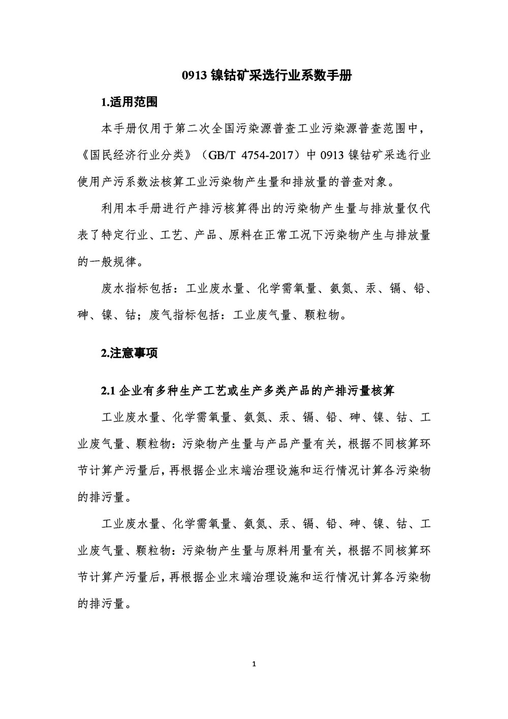 導讀:第二次全國污染源普查 鎳鈷礦采選行業(yè)系數(shù)手冊(初稿) 本手冊僅用于第二次全國污染源普查工業(yè)污染源普查范圍中,《國民經(jīng)濟行業(yè)分類》(GB/T 4754-2017)中0913鎳鈷礦采選行業(yè)使用產(chǎn)污系數(shù)法核算工業(yè)污染物產(chǎn)生量和排放量的普查對象。利用本手冊進行產(chǎn)排污核算得出的污染物產(chǎn)生量與排放量僅代表...