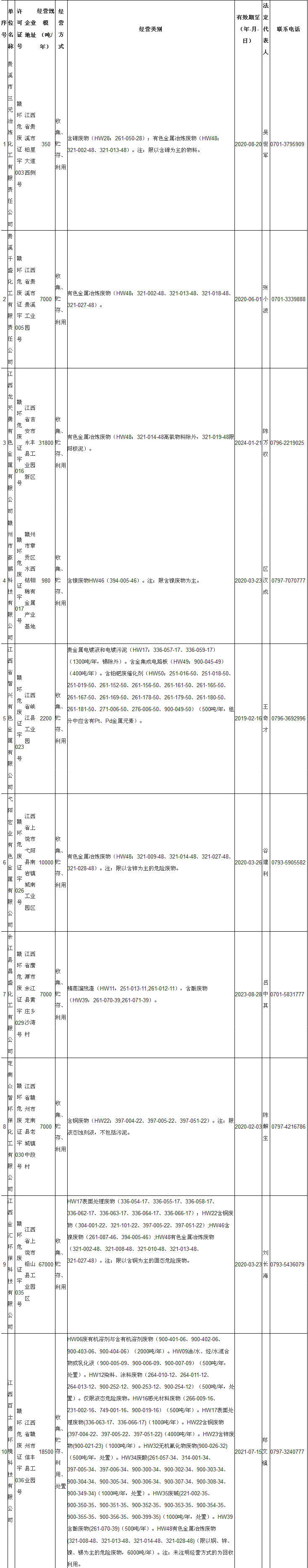 日前江西省生態(tài)環(huán)境廳發(fā)布了危險廢物經營許可證名單,其中涉及69家公司,具體內容如下: