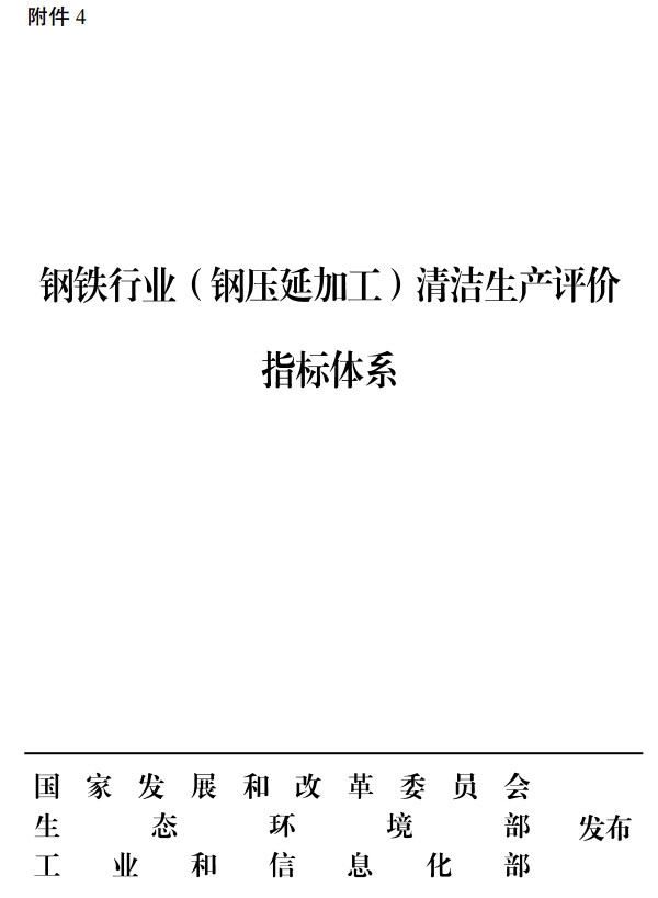 近日,國家發(fā)改委發(fā)布了鋼鐵行業(yè)(鋼延壓加工)清潔生產(chǎn)評(píng)價(jià)指標(biāo)體系,該政策對(duì)于鋼延壓加工工序中的大氣污染物排放量、水污染物排放量、固體廢物處置方面都進(jìn)行了說明,全文如下: