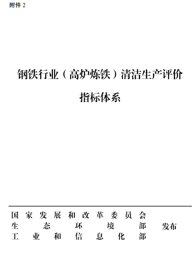 日前,國家發(fā)改委、生態(tài)環(huán)境部、工信部聯(lián)合印發(fā)了鋼鐵行業(yè)(高爐煉鐵)清潔生產(chǎn)評(píng)價(jià)指標(biāo)體系,規(guī)定了在高爐煉鐵工藝中有關(guān)大氣污染物的排放指標(biāo),包括顆粒物、二氧化硫、氮氧化物,其中高爐環(huán)境除塵及礦槽除塵配備有齊全的除塵裝置,確保無可見煙粉塵外逸。全文如下: