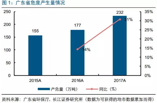 危廢產(chǎn)量:環(huán)保督察促危廢產(chǎn)量高增廣東省是我國產(chǎn)危大省,也是我國危廢正規(guī)化治理水平較高的省份。本篇報告主要對廣東危廢市場供需格局進行詳細梳理。廣東省2017年危廢產(chǎn)量同比增31%至232萬噸2017年廣東省危廢產(chǎn)量約232萬噸,同比增31%,可獲得數(shù)據(jù)的14個地市中除了廣州略微下降,剩下地市產(chǎn)危量都出...
