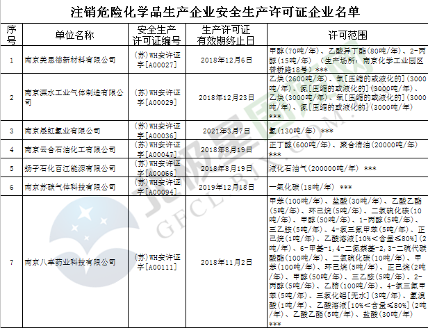 近日,江蘇省應急管理廳發(fā)布2019年第3號公告,公布199家危險化學品生產(chǎn)企業(yè)安全生產(chǎn)許可證被注銷,詳情如下:截止2019年1月11日,全省共有南京美思德新材料有限公司等199家危險化學品生產(chǎn)企業(yè)(見附件)的《危險化學品生產(chǎn)企業(yè)安全生產(chǎn)許可證》不在有效期內(nèi),或者在有效期內(nèi)不再從事危險化學品生產(chǎn)活動的...