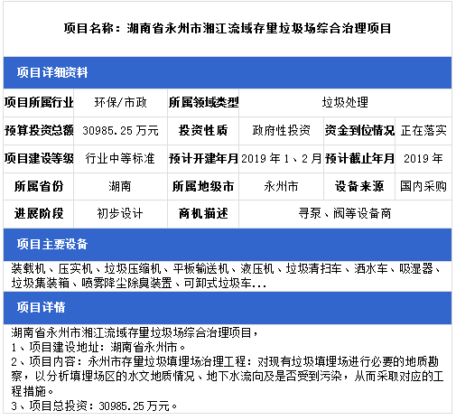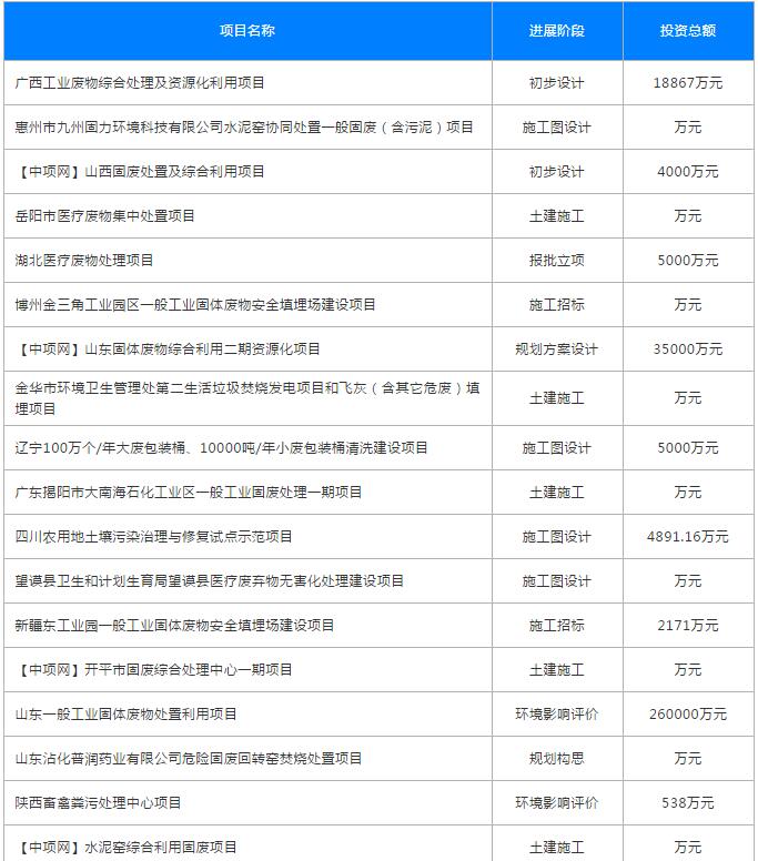 中項網(wǎng)獨家授權北極星固廢網(wǎng)發(fā)布最新垃圾處理項目(2018年12月18日更新),其中包括生活垃圾無害化處理設置建設項目、農(nóng)村生活垃圾治理項目、生活垃圾衛(wèi)生填埋場項目等。具體內(nèi)容如下: