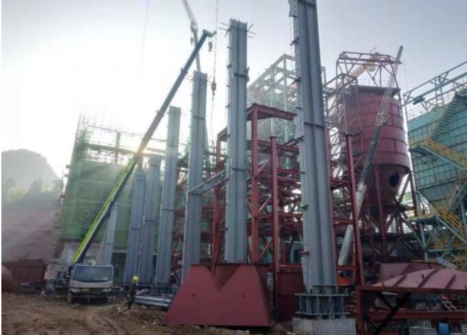 2、煙氣處理:收塵器、反應塔公共平臺安裝;消石灰、灰?guī)熘麂摌?、樓梯安裝,灰斗、倉體安裝;