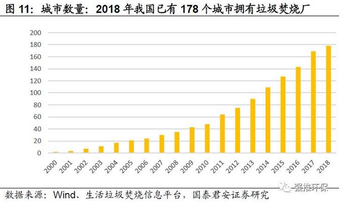 行業(yè)新增焚燒需求,主要來自城市化進程以及原有城市環(huán)衛(wèi)服務開始覆蓋鄉(xiāng)鎮(zhèn)而收集面積增大。帶動三四線城市新建項目以及原有項目的擴建需求。1)新建項目向三四線城市拓展趨勢較明顯,我國有垃圾焚燒廠的城市個數(shù)由2011年的64個增加到2018年的178個;2)52%的已投運項目已經(jīng)或正在擴建,在已投運的362個項目中,其中175個為單體項目,187個已經(jīng)或正在二期及三期擴建。