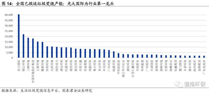 光大國際、錦江環(huán)境、三峰環(huán)境為行業(yè)已投運產(chǎn)能前三的公司。