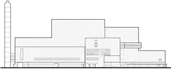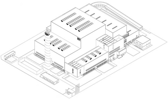 垃圾是人類城市生活的必然產(chǎn)物,垃圾處理中心也成為城市重要的市政公用設(shè)施。焚燒中心主廠房是廠區(qū)內(nèi)體量及高度最大的建筑單體和核心建筑,通過對(duì)內(nèi)部工藝和外部圍護(hù)系統(tǒng)的整合設(shè)計(jì),建筑體量滿足設(shè)備工藝對(duì)空間的要求,使建筑作為一個(gè)整體,將垃圾運(yùn)卸、存放、焚燒、凈化、發(fā)電的工藝流程及空間特征表達(dá)出來,并在保證工藝要求和使用功能的前提下,強(qiáng)調(diào)建筑體量的完整性和工業(yè)建筑的力量感、尺度感,選用能夠反映工業(yè)建筑特征的立面建材,形成簡(jiǎn)潔、樸素、高效、不過分夸張喧鬧的外觀,展示其獨(dú)有的建筑形象,在“方整”的基本形態(tài)基礎(chǔ)上,在建筑轉(zhuǎn)角、主要出入口、屋頂?shù)任恢眠M(jìn)行了體量的細(xì)化處理。