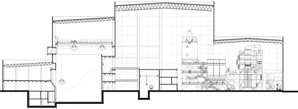 焚燒中心還具有展示、教育的社會(huì)服務(wù)功能,在廠房?jī)?nèi)部空間設(shè)置了一條生動(dòng)、安全、清潔、全面的教育展示通廊和一條垃圾處理參觀廊道,參觀和展示區(qū)域與內(nèi)部生產(chǎn)區(qū)域流線分開,互不干擾,并重點(diǎn)處理了辦公、參觀、展示和教育空間的立面表達(dá)。