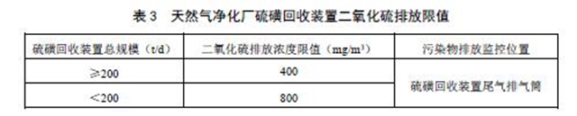 5.1.1 現(xiàn)有天然氣凈化廠自2022 年1 月1 日起執(zhí)行表3 規(guī)定的二氧化硫排放限值。