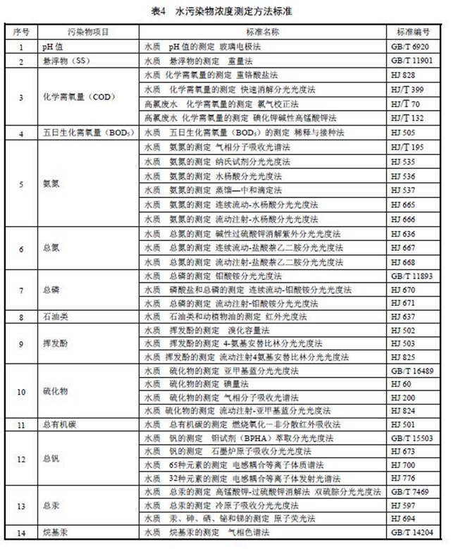 6.2.2 水污染物濃度的測定采用表4所列的方法標準。