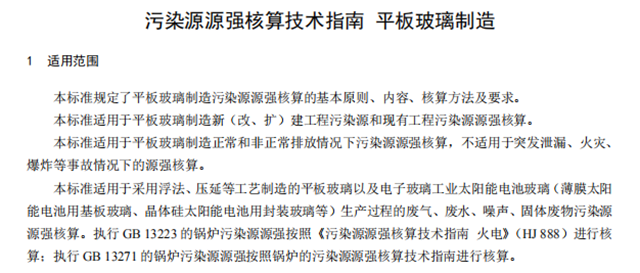 國(guó)家標(biāo)準(zhǔn)《污染源源強(qiáng)核算技術(shù)指南 平板玻璃制造》印發(fā),自2019年1月1日起開(kāi)始實(shí)施。