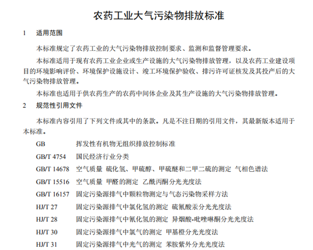 2.農(nóng)藥工業(yè)大氣污染物排放標準(征求意見稿)