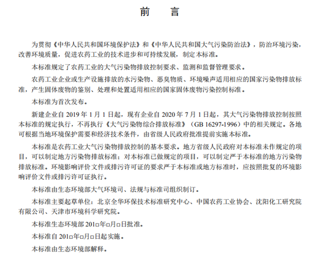 3.《農(nóng)藥工業(yè)大氣污染物排放標準(征求意見稿)》編制說明