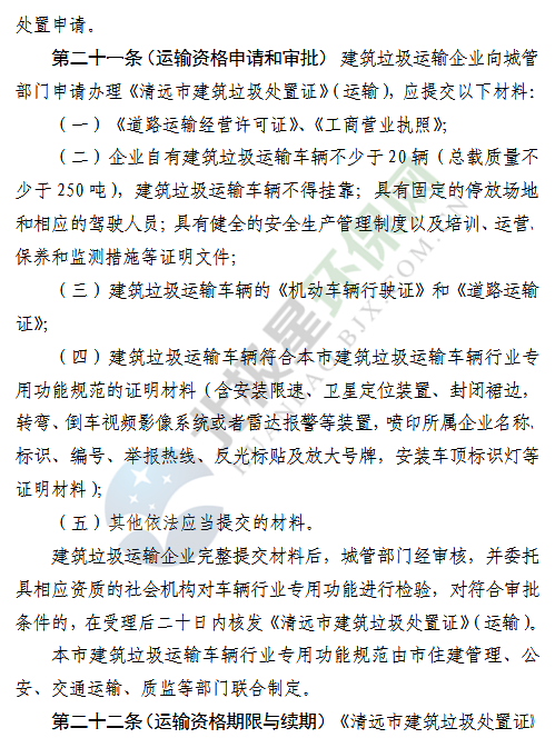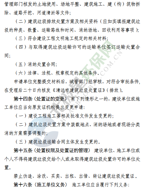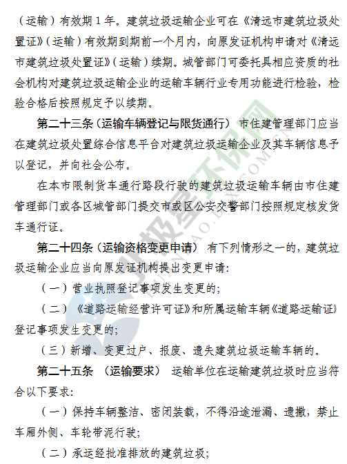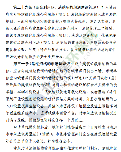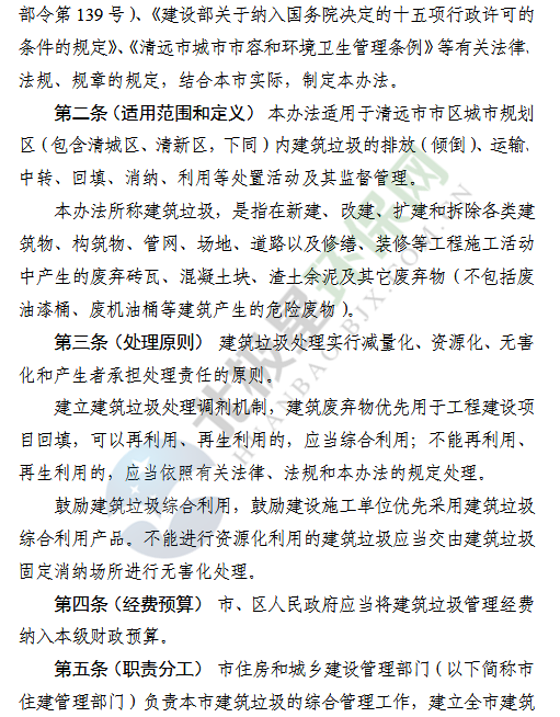 廣東省清遠(yuǎn)市制定了《清遠(yuǎn)市市區(qū)建筑垃圾管理暫行辦法》(征求意見稿)。