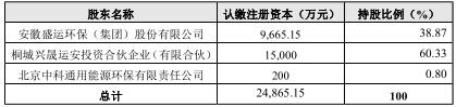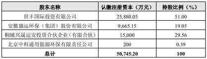 本次世豐國際以自有資金共計 25,880.05 萬元人民幣,通過增資的方式,獲得標(biāo)的公司 51%的股權(quán),盛運環(huán)保持有標(biāo)的公司 19.05%的股權(quán),桐城興晟運安投資合伙企業(yè)(有限合伙)持有標(biāo)的公司 29.56%的股權(quán),北京中科通用能源環(huán)保有限責(zé)任公司持有標(biāo)的公司 0.39%。