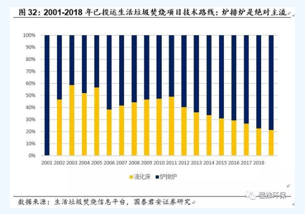 爐排爐較流化床技術(shù)噸上網(wǎng)電量高,而爐排爐技術(shù)在我國已成為絕對(duì)主流。