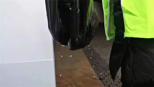 由于干垃圾袋底部有瀝水孔,如果居民將濕垃圾裝進(jìn)了干垃圾袋,底部就可能漏液,如此一來,就提醒居民不能混裝垃圾。