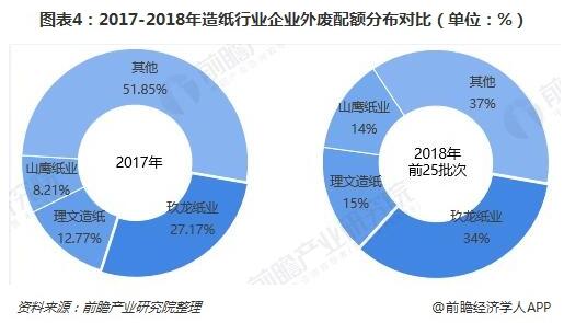 而從外廢配額的企業(yè)分布來看,有向龍頭企業(yè)集中的趨勢(shì)。2018年前25批次外廢配額中玖龍紙業(yè)、理文造紙、山鷹紙業(yè)三家廢紙系龍頭獲得配額占比達(dá)63%,較2017年的48%有明顯提升。長(zhǎng)期來看,外廢進(jìn)口清零大勢(shì)所趨,各企業(yè)也通過尋求替代原料的方式來解決這一問題。而龍頭企業(yè)依靠資金優(yōu)勢(shì)和前瞻性的布局,在原料端布局深厚,并且通過海外產(chǎn)能建設(shè)來獲得原料供應(yīng),具備比較優(yōu)勢(shì)。
