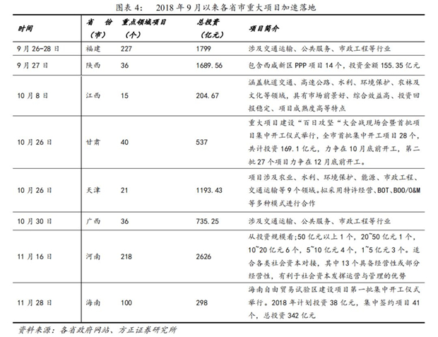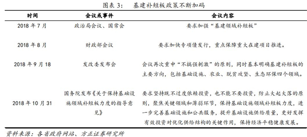 2018年年中以來,基建補(bǔ)短板政策不斷加碼。2018年7月,政治局會議、國常會分別作出要求加強(qiáng)“基建領(lǐng)域補(bǔ)短板”,此后基建補(bǔ)短板政策不斷加碼,各省市重大項(xiàng)目加速落地。