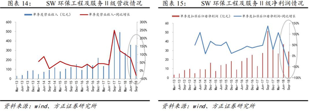 由于環(huán)保板塊2018年一季度業(yè)績高增,第二季度開始業(yè)績增速放緩,隨著預(yù)期現(xiàn)有利好政策落實(shí),預(yù)計環(huán)保企業(yè)業(yè)績的低點(diǎn)出現(xiàn)在2019年第一季度。環(huán)保企業(yè)的基本面可能是個平底,受基建政策、融資政策和公司自身戰(zhàn)略選擇三方面綜合影響。