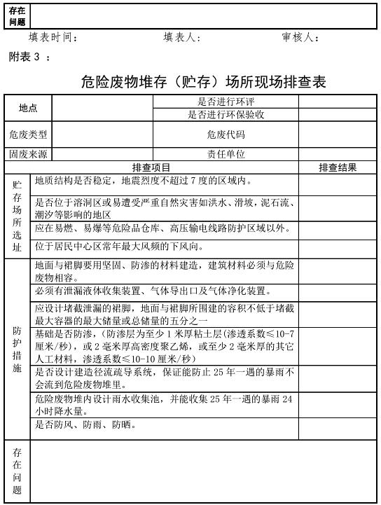 3.危險廢物堆存(貯存)場所現(xiàn)場排查表