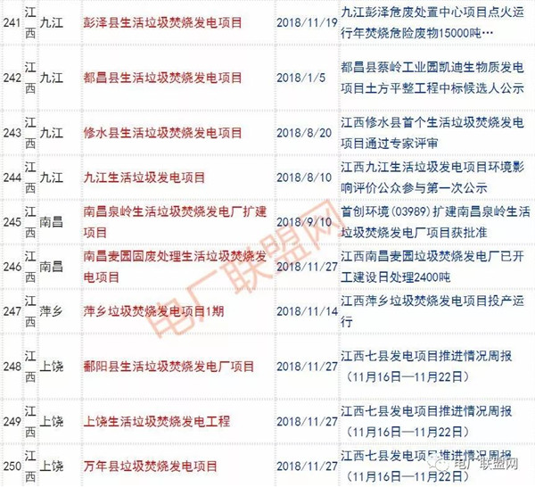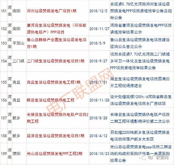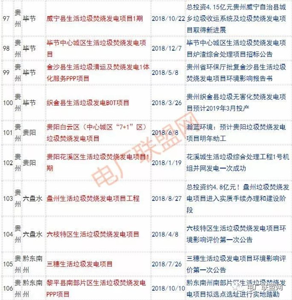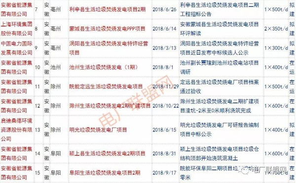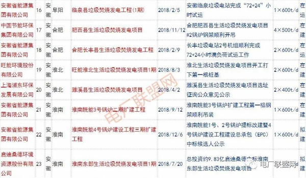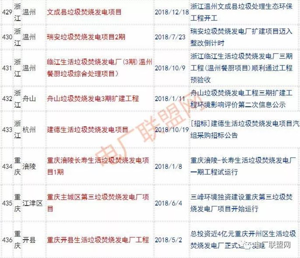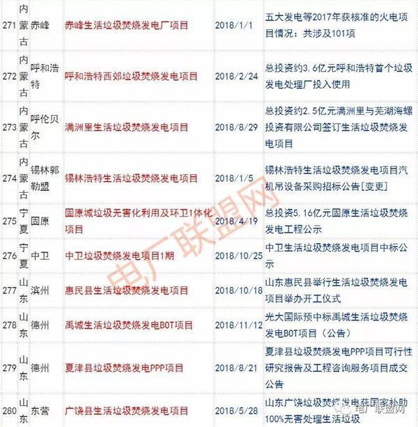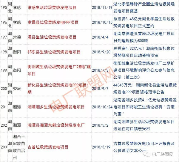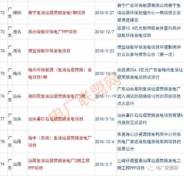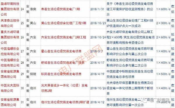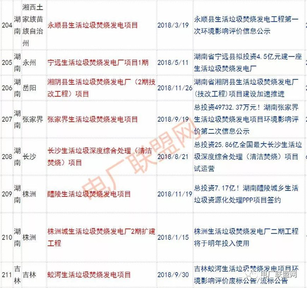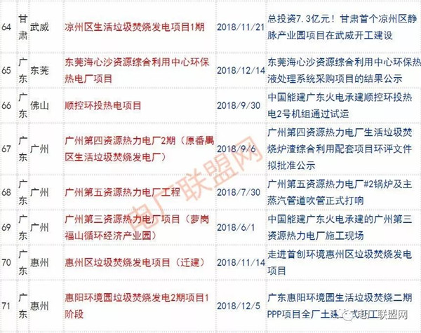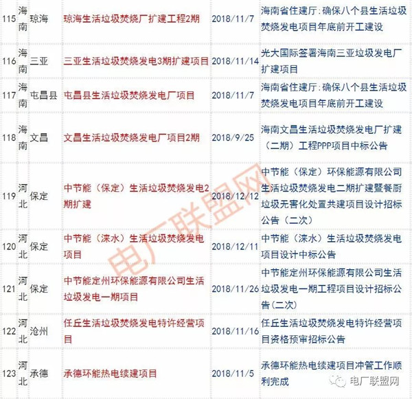 2018年新投入運(yùn)行的生活垃圾焚燒廠超過70座,在建項(xiàng)目166座,擬建項(xiàng)目201座.具體項(xiàng)目名單如下: