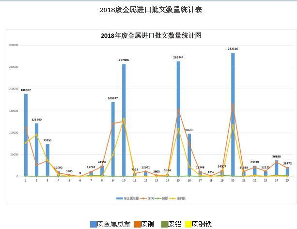 從上圖我們可以看到,2018年的大多數(shù)批次的廢金屬進口批文數(shù)量都是比較少的,第六批總量甚至為零,只有少數(shù)幾個批次的進口批文數(shù)量相對高一些。
