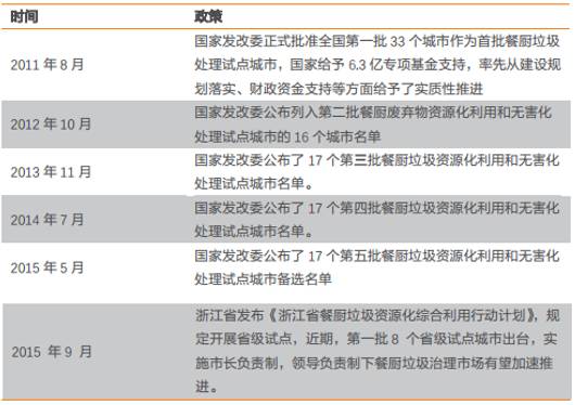 此外, 2015 年 9 月,浙江省發(fā)布《浙江省餐廚垃圾資源化綜合利用行動計劃》,規(guī)定開展省級試點實施市長負責制,通過領(lǐng)導負責的制度來加速推進餐廚垃圾處理建設(shè)。