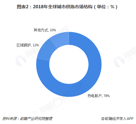在城市供熱領(lǐng)域,熱電聯(lián)產(chǎn)也占據(jù)著重要地位。2018年,在全球城市供熱市場結(jié)構(gòu)中,熱電聯(lián)產(chǎn)供熱占比接近八成,約為78%,遠(yuǎn)高于區(qū)域鍋爐12%的比重。
