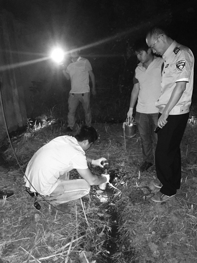 當(dāng)晚,檢查組一行來到周鐵鎮(zhèn)對部分化工企業(yè)的生產(chǎn)設(shè)備及生產(chǎn)產(chǎn)生的廢氣、廢水進行突擊檢查。檢查中,檢查組發(fā)現(xiàn)一家企業(yè)圍墻外圍有少量滲排痕跡,監(jiān)測人員立即進行采樣。