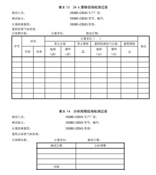 b) 無自動校準(zhǔn)功能的NMHC-CEMS 每7 d 至少校準(zhǔn)一次儀器零點(diǎn)和量程,同時測試并記錄零點(diǎn)漂移和量程漂移;