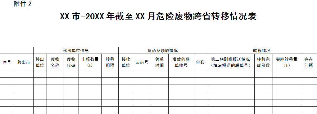 2.XX市—20XX年截至XX月危險(xiǎn)廢物跨省轉(zhuǎn)移情況表