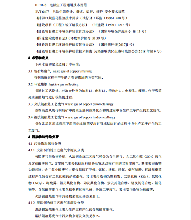 為貫徹《中華人民共和國環(huán)境保護法》和《中華人民共和國大氣污染防治法》等法律法規(guī),防治環(huán)境污染,規(guī)范銅冶煉廢氣治理工程建設與運行管理,制定本標準。