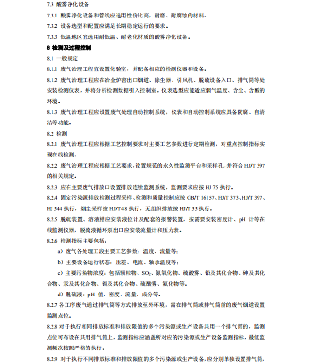 銅冶煉廢氣治理工程技術規(guī)范