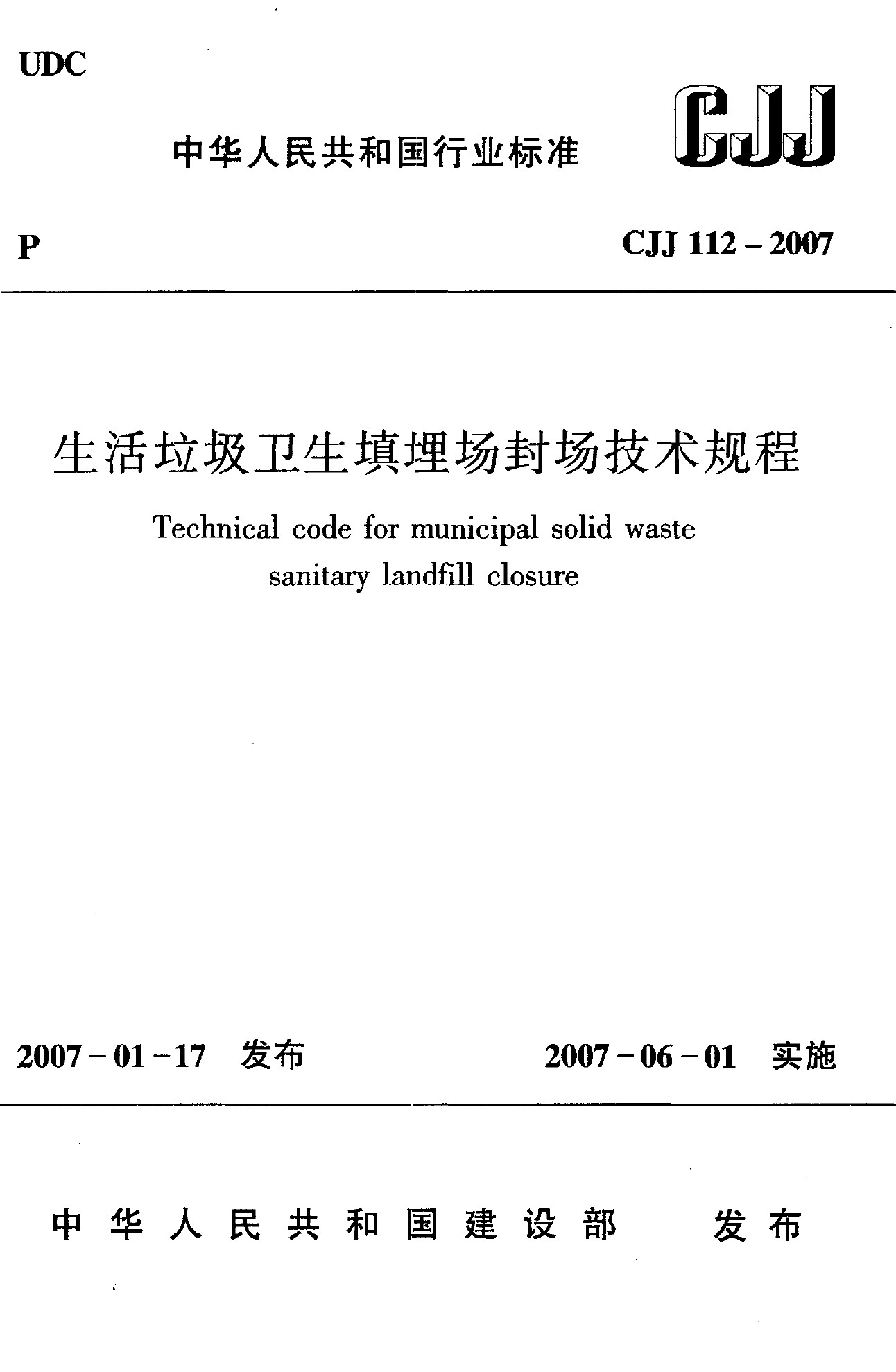 生活垃圾衛(wèi)生填埋場封場技術(shù)規(guī)程(CJJ 112-2007)