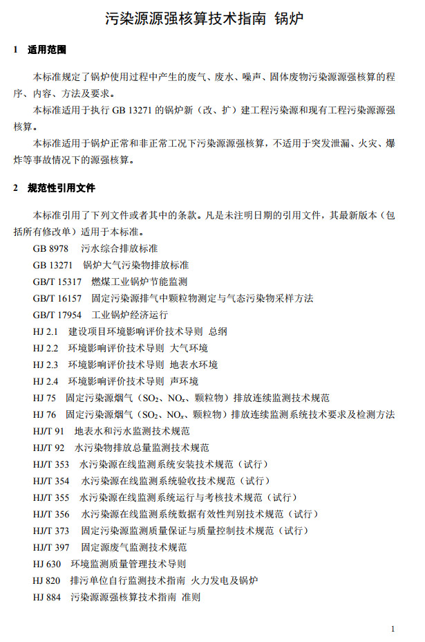 為貫徹《中華人民共和國(guó)環(huán)境保護(hù)法》《中華人民共和國(guó)環(huán)境影響評(píng)價(jià)法》《中華人民共和國(guó)大氣污染防治法》《中華人民共和國(guó)水污染防治法》《中華人民共和國(guó)環(huán)境噪聲污染防治法》《中華人民共和國(guó)固體廢物污染環(huán)境防治法》等法律法規(guī),完善固定污染源源強(qiáng)核算方法體系,指導(dǎo)和規(guī)范鍋爐污染源源強(qiáng)核算工作,制定本標(biāo)準(zhǔn)。本標(biāo)準(zhǔn)規(guī)定了鍋爐使用過(guò)程中產(chǎn)生的廢氣、廢水、噪聲、固體廢物污染源源強(qiáng)核算的程序、內(nèi)容、方法及要求等。本標(biāo)準(zhǔn)附錄A~附錄D均為資料性附錄。本標(biāo)準(zhǔn)為首次發(fā)布。