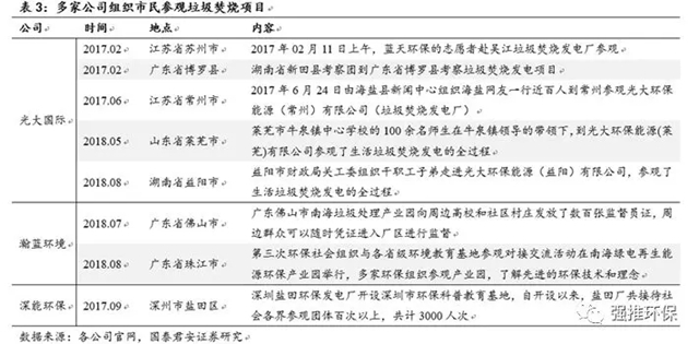 隨著行業(yè)發(fā)展成熟,政府和垃圾焚燒企業(yè)在選址上更有經(jīng)驗(yàn),群眾宣傳教育和溝通更加到位,行業(yè)龍頭公司定期組織市民參觀垃圾焚燒項(xiàng)目并公開(kāi)實(shí)時(shí)煙氣排放數(shù)據(jù)等宣傳,有效的緩解居民負(fù)面情緒,取得其認(rèn)可和支持;此外,龍頭公司品牌效應(yīng)較為突出,更易被信賴(lài),因此群體性事件帶來(lái)的負(fù)面效應(yīng)也相對(duì)較少。